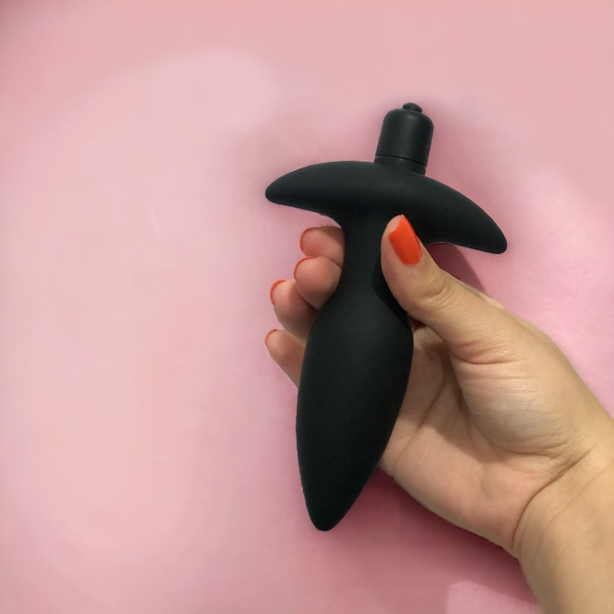 Plug Anal em silicone de grau médico com bullet vibratório que utiliza 1 pilha AAA.